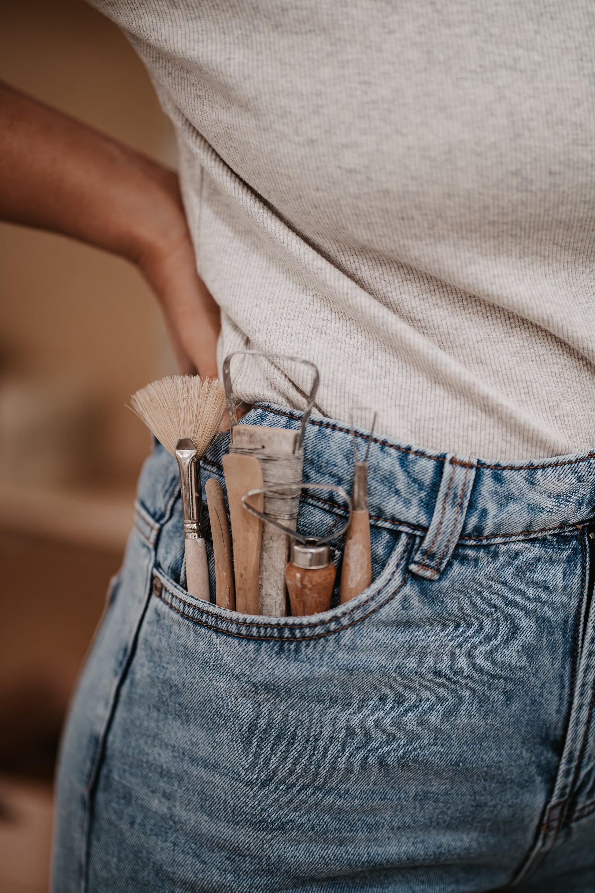 Kleidung die bequem ist und dreckig werden darf, wer möchte kann hier vor Ort noch eine Schürze von uns darüber anziehen. In der Werkstatt ist es angenehm warm, zieh dich also nicht zu dick an.